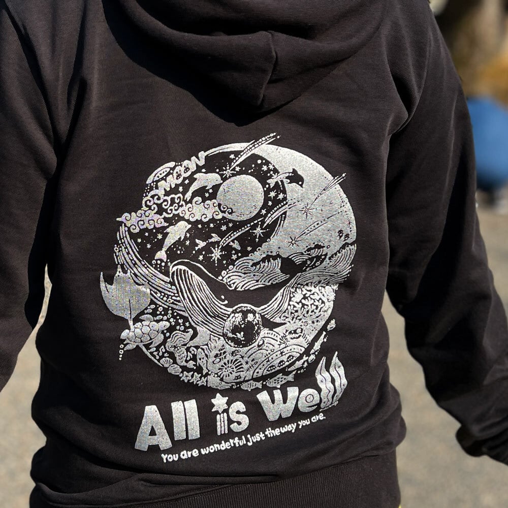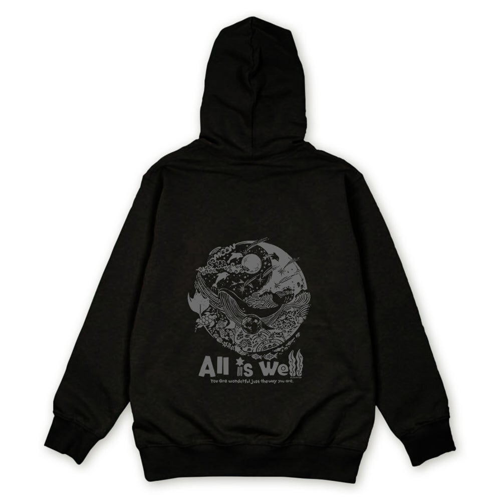 宇宙双子 Sun & Moon〜All is well〜パーカー ⭐️BLACK⭐️オーガニックコットン100%(プルオーバー)